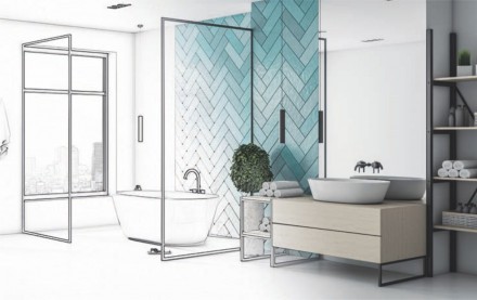 - Precyzyjnie dobierajmy formaty. Nawet jeśli jesteśmy zakochani w cegiełkach układanych np. w jodełkę, zweryfikujmy to rozwiązanie, „przymierzając” je do konkretnego wnętrza – cięcia z boków oraz od góry wyglądają bardzo nieestetycznie. Podczas podejmowania decyzji, bardzo ważną rolę odgrywają dobrze przeprowadzone pomiary każdego elementu – obudowy WC, kabiny prysznicowej, pasa ściany nad umywalką, który chcemy wyróżnić inną okładziną lub odrębnym formatem płytek. Projekt powinien uwzględnić zarówno grubość materiałów, które będziemy łączyć, jak i fugi.